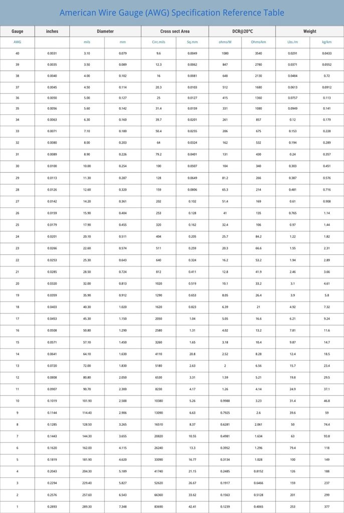 - AWG Number: The core identifier, ranging from AWG 40 (the thinnest, like a hair) to AWG 0000 (the thickest). AWG 1 to AWG 40 are most commonly used.