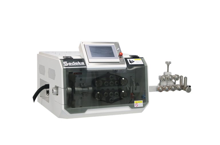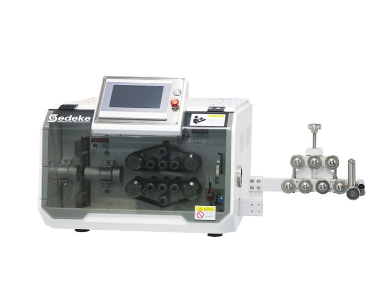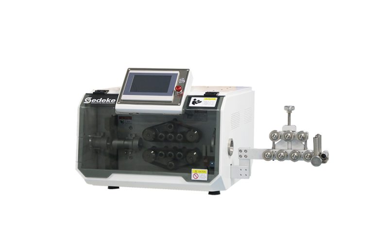 This EC-810 machine is designed to automatically cut all kinds of material including wire, cable, round material such as tubing, flat ribbon and Glass Fiber Optic (GOF) cable. This flexible cutting machine processes wire up to150mm², up to 33mm O.D. It also has the function of stripping cables for one side.