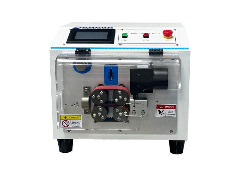 This machine adopts the latest 32-bit intelligent control system, Chinese and English switching touch screen super operation, can store hundreds of information, call at any time, efficient, convenient and fast. Suitable for heat shrink tube, PVC tube, nylon braided belt webbing cutting machine PVC tube, rubber tube, tube cutting machine multi-purpose cutting machine efficient and practical quality excellent arbitrary adjustment.